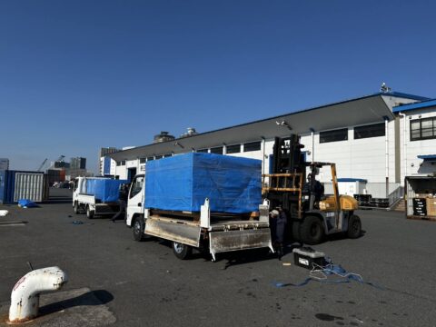 離島への工事資機材運搬の為、辰巳ふ頭まで陸送!